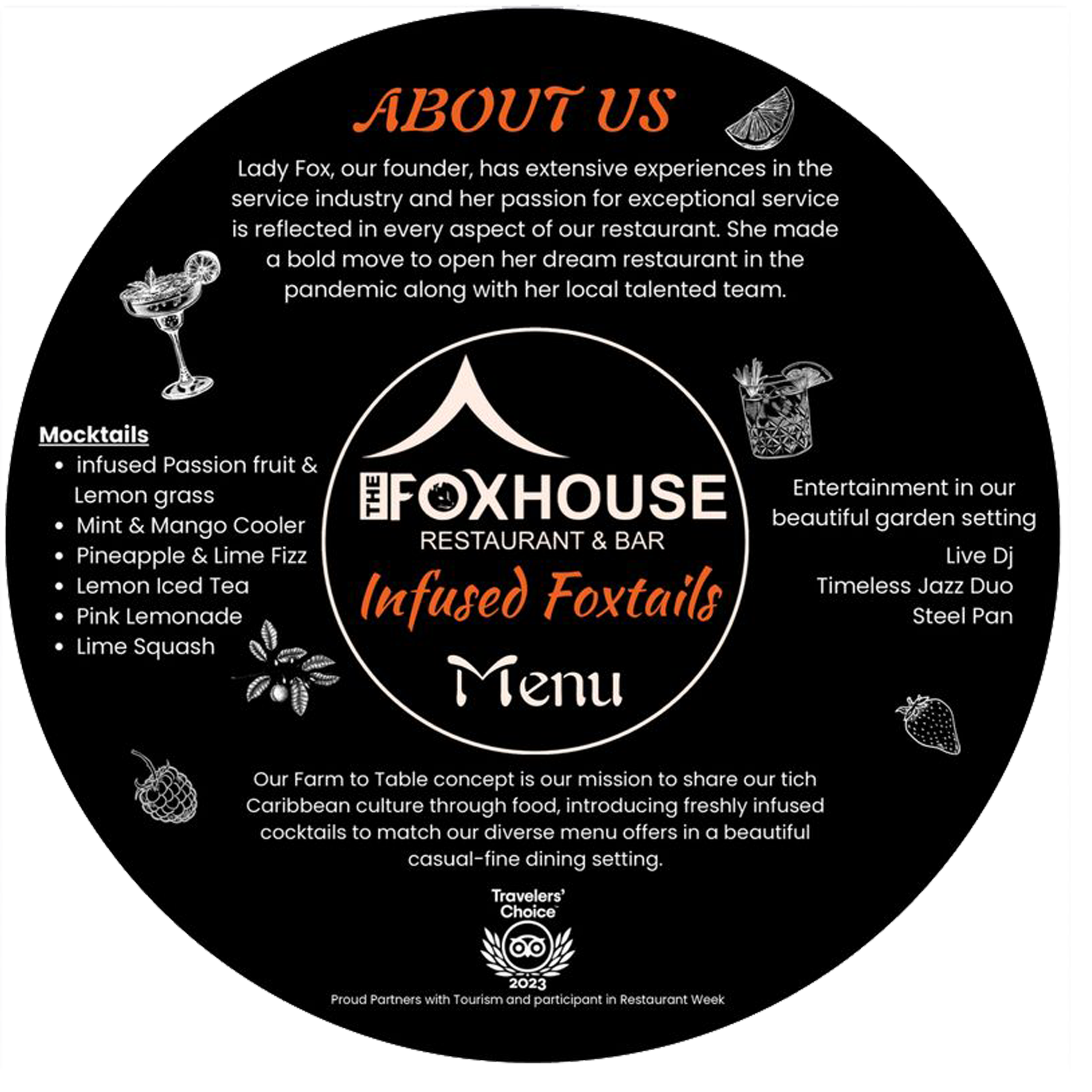 Lady Fox, our founder, has extensive experience in the service industry, and her passion for exceptional service is reflected in every aspect of our restaurant. Our culinary team comprises talented locals who create flavorful dishes that are a true reflection of the Caribbean culture and its vibrant flavors.